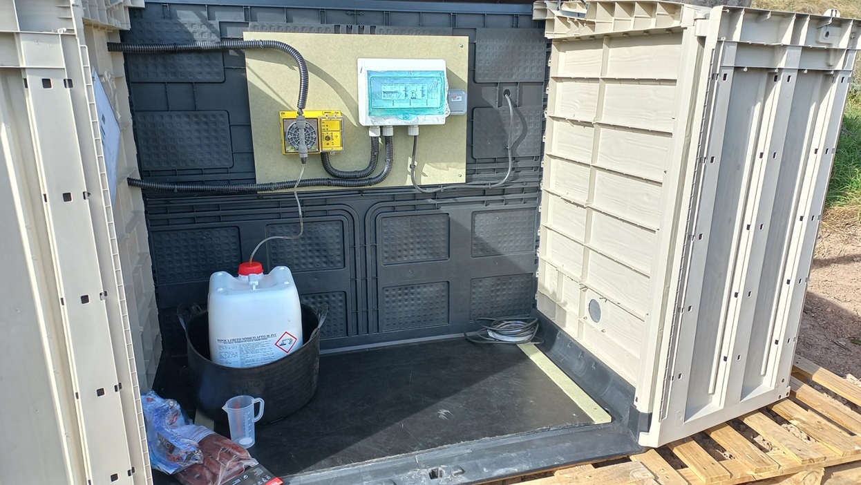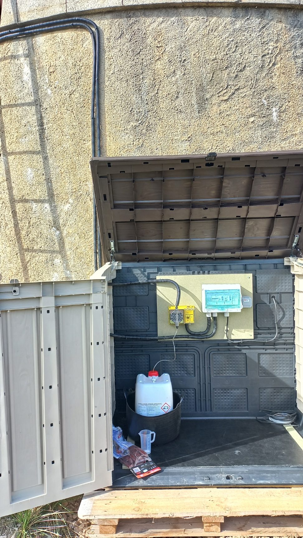 Après analyse du problème, nous avons proposé l’installation d’un système de chloration avec une pompe doseuse de 2 l/h, permettant d’atteindre une concentration de chlore précise. Afin d’assurer un mélange homogène, une pompe de recirculation a été installée dans la cuve (100 m³).